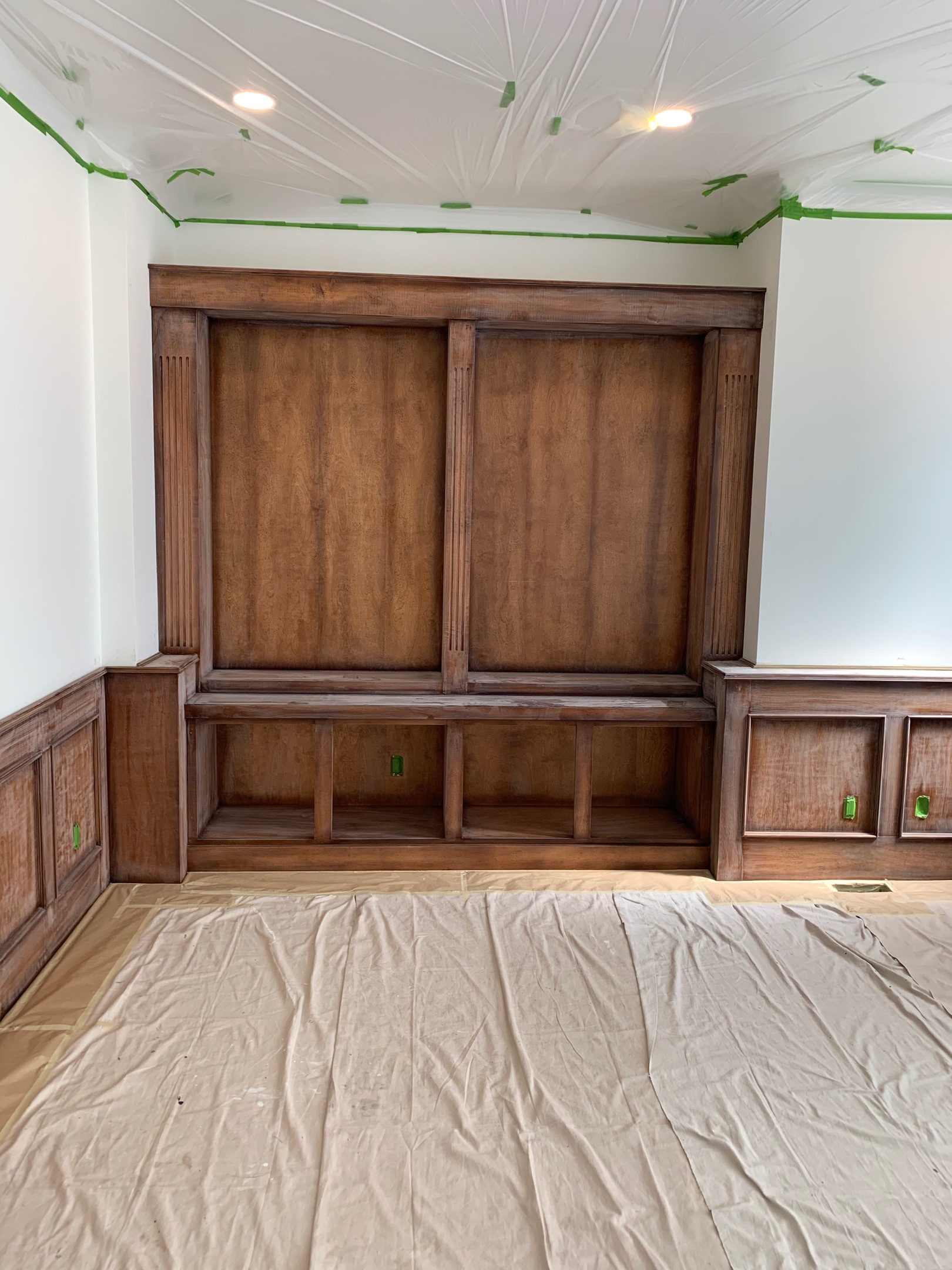 Refinishing of maple wainscoting and library shelving